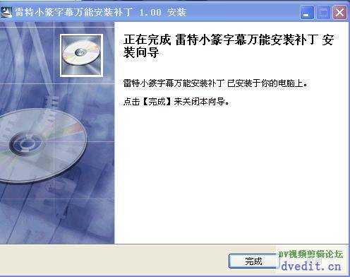 9、点击“完成”结束“雷特小篆字幕万能安装补丁”的安装。