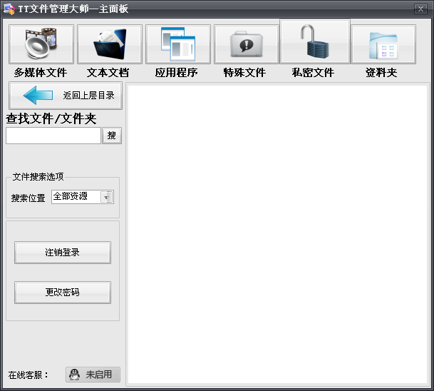 TT文件管理大师既是一款文件管理工具,也是一款文件加密工具。TT文件管理大师具有安全和便捷的文件管理保护特色,能将文件存取虚拟化,从此不怕文件丢失。
