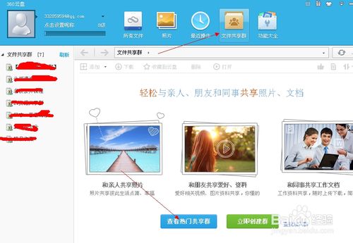 进入云盘后,点击文件共享群。会弹出一个菜单:查看热门共享群,点击进入。