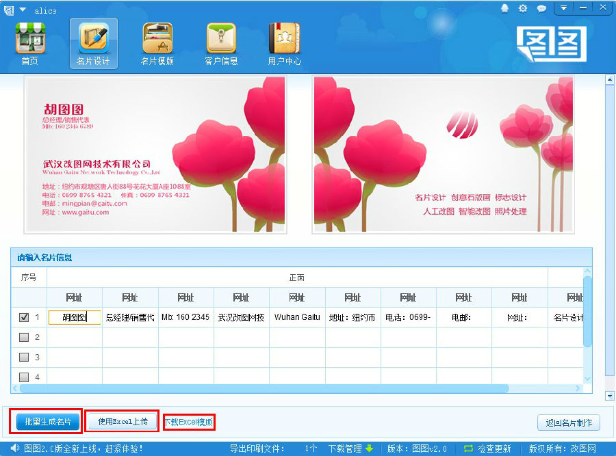 输入名片内容有两种方式可供选择:在页面的表格上填写或下载Excel模板。