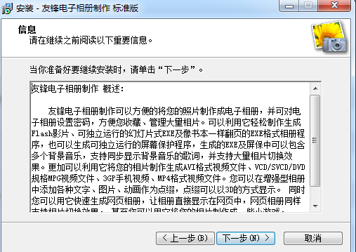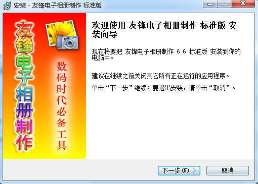 友锋电子相册制作软件标准版安装向导界面,单击下一步,继续安装。