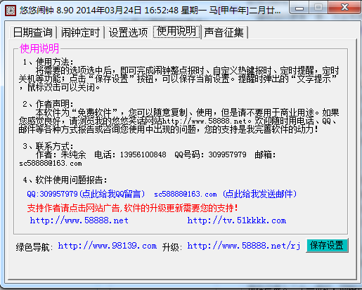 2、自定义热键报时、定时提醒、定时关机等功能。