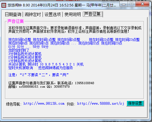 1、“悠悠闹钟”具有随意设置时间间隔的真人报时、文字提示、定时提醒功能。