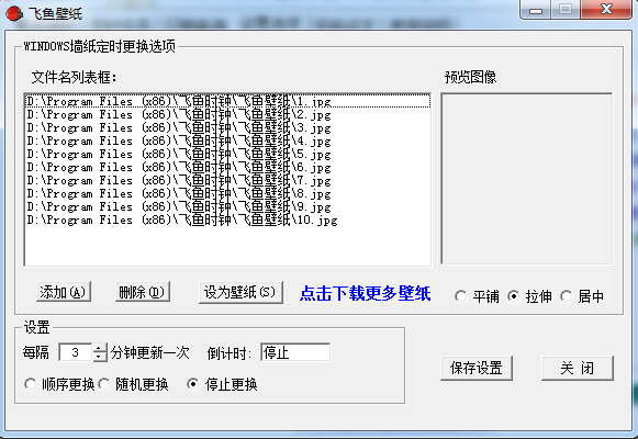 5、“墙纸定时更换”工具可将自己所喜欢的图片(格式为jpg,gif,bmp)加入到墙纸清单,然后按照所指定的方式定时进行更换。