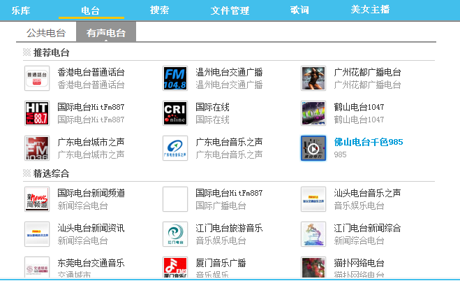 有声电台,推荐电台、精选综合、国内电台、国外电台、流派电台