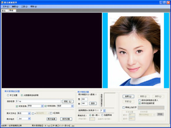 7、照相方式有边报名(录入)边照相,和批量照相(录完或录入一部分后统一照相)两种。
