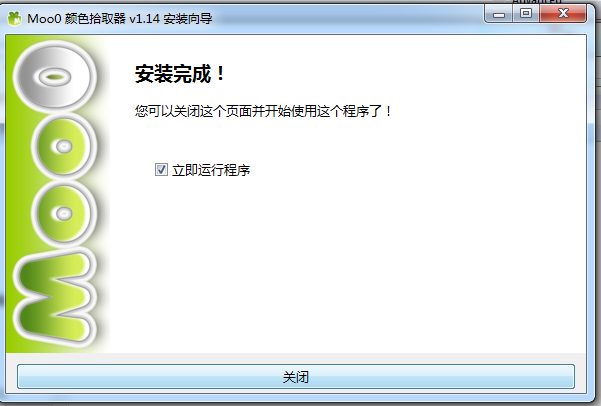 安装完成,勾选立即运行程序,单击关闭,退出安装向导。