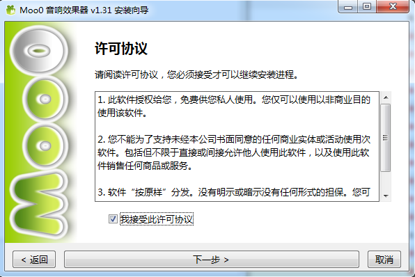 软件安装用户许可协议,勾选我接受,单击下一步继续安装。