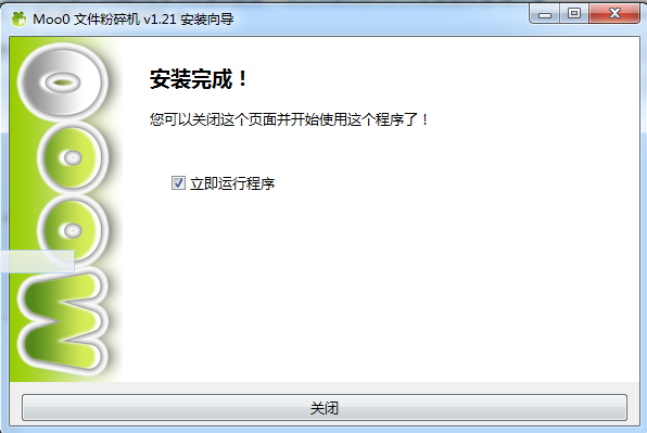 安装完成,勾选立即运行程序,单击关闭,结束安装。