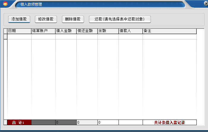 借入款项管理:添加借贷、修改借贷、删除借贷;
