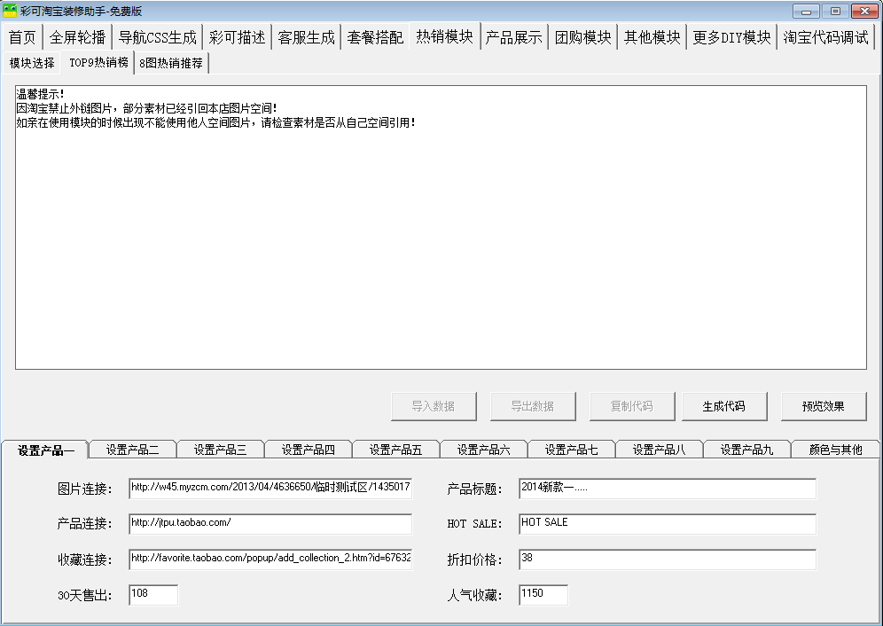 做为很多新手卖家,每天奔波于各大论坛,看到别人的模块感觉很有个性,自己要想要,但是又不知道代码是多少!问遍了所有有大群小群,最后还是离不开钱!今天我为大家带来的是八图热销榜模块!费话不多说,先上图!