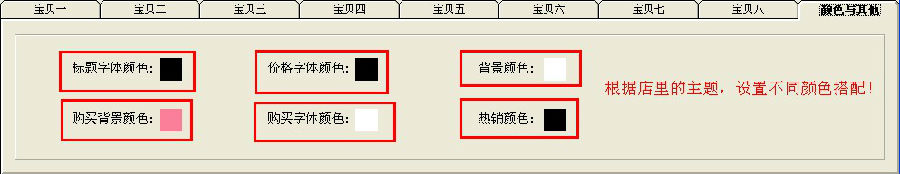 第三:设置颜色,假如你的店是红色为主题的,那你可以进入颜色设置,把模块的颜色设置成红色的,或者其他可以搭配的颜色,其中包括字体颜色也是可以改的!一共有六个颜色位置可以修改!