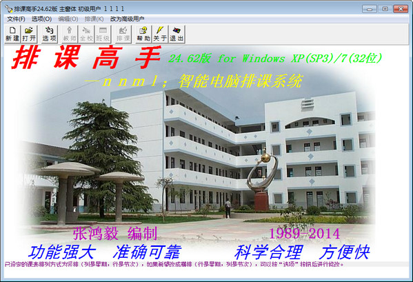 用途广泛:编排打印出各级各类学校的课表、监考表、校历、年历、作息时间表、行事历、教学进度表,可以临时调课、代课,统计教师的工作量和课时津贴,统计学生成绩,给学生分班。