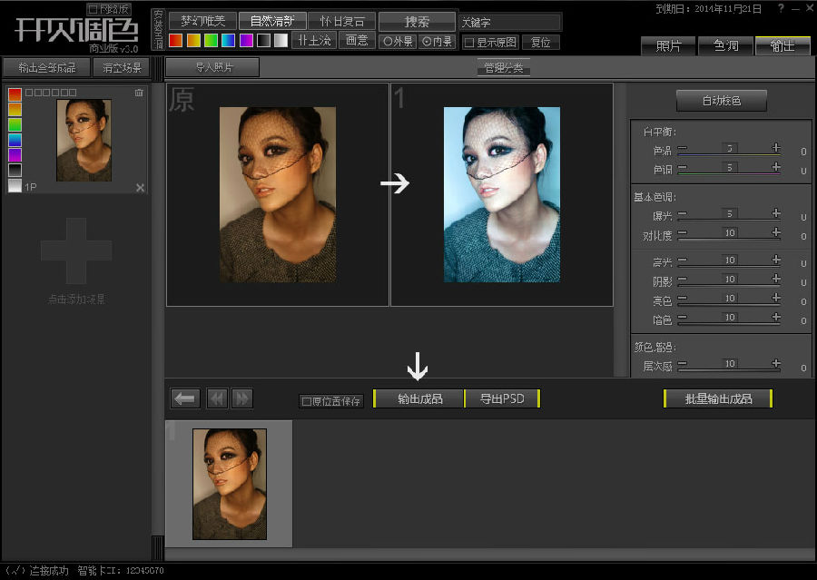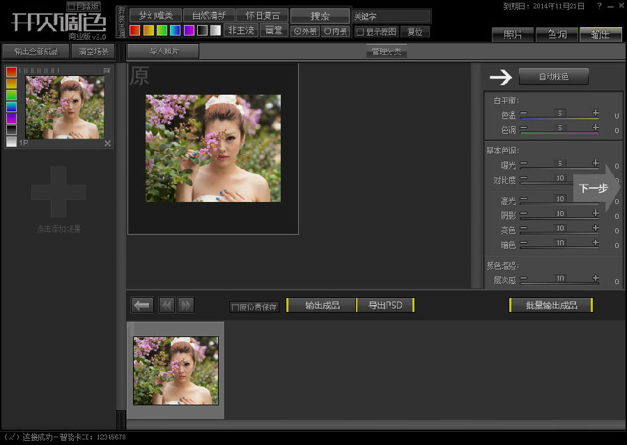 分析,自动调整照片的颜色、色阶、对比度、亮度等信息,对照片进行高速自动校色。
