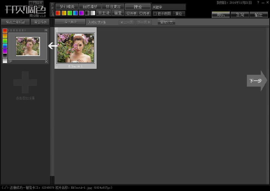 开贝调色软件适用于各大专业影楼用来后期制作处理照片调色软件,超强照片调色,带来惊艳效果,自动校色并美肤后,选择合适的色调快速输出成品,简洁的用户操作界面,超强的自动校色功能,世界顶级智能美肤引擎,快速调出专业的影楼照片效果。