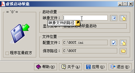 虚拟启动软盘可以将启动软盘集成进系统,直接从硬盘中启动支持光盘的DOS,软件多国语言支持、操作系统自适应版本,工具针对多个 BOOT.ini 的多引导系统提供预览、选择 BOOT.ini 界面,直接由启动软盘制作“启动软盘映像”的功能,省去使用 winimage 或 floppyimage 等软件的使用。