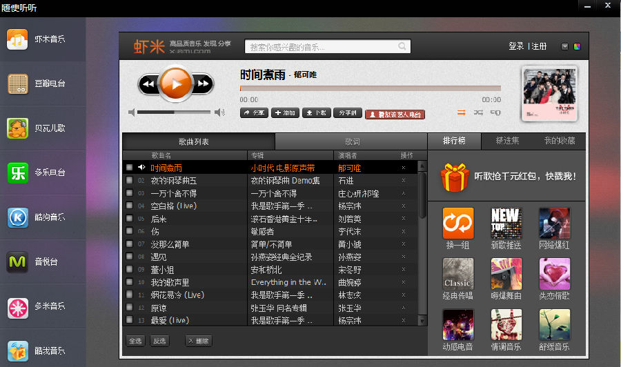 当前位置:星空外围足球网(媒体工具视频播放 → 随便听听 1.1 绿色版