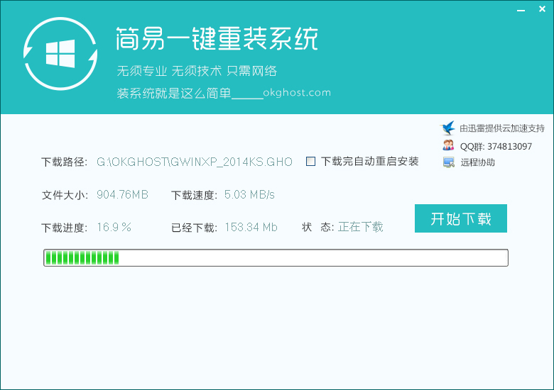 点击 [开始下载] 后工具即会进行系统下载,下载完后会根据相应设置进行重启自动进行安装
