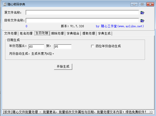 随心密码字典是一款是一款用来生成密码字典的工具,本款随心密码字典绿色无需安装,免费使用,对于字典处理方面具有非常多的实用功能,可以用于破解用字典的工具。