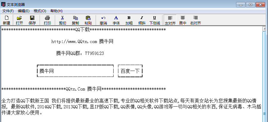 2、这就是这款文本浏览器界面,4个工具栏:文件、编辑、格式、帮助