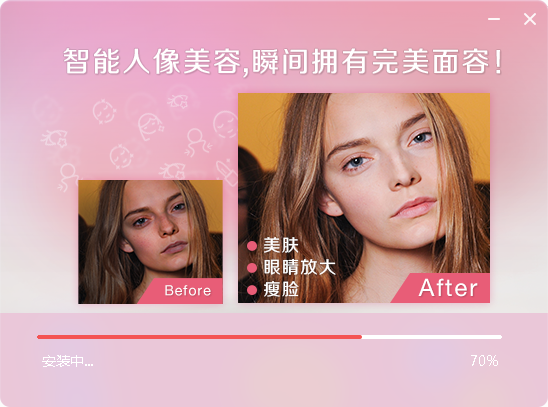 独家研发的一键美颜特效,搭配丰富美颜功能,让你瞬间拥有嫩白肌肤、尖俏小v脸!