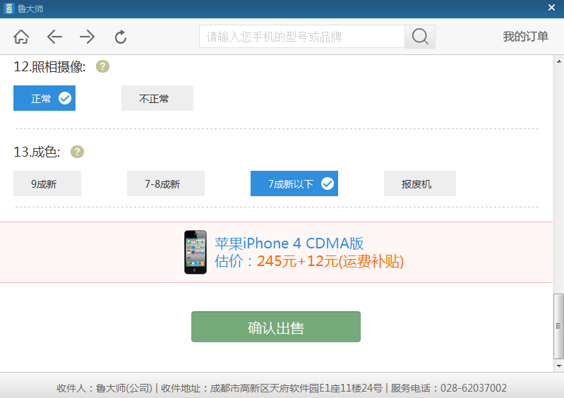 2、二手手机信息完善,进行估价