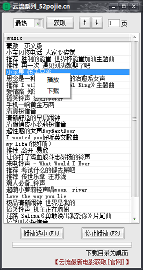 1、使用键盘↑↓操作列表框,快捷键F1/F2 播放/暂停。