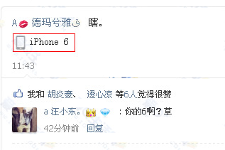 看效果图,发表的说说,来源iPhone6,直接闪瞎!