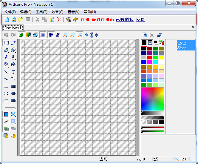 1、创建和编辑标准尺寸或自定义尺寸的图标,色深可达1600万