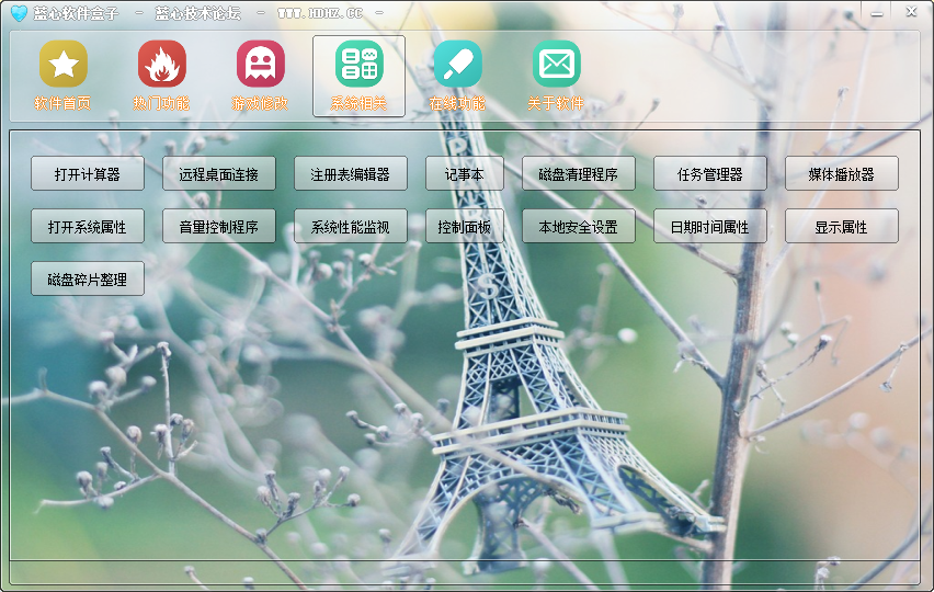 蓝心软件盒子是一款多功能软件盒子工具,主要提供一些热门实用工具、游戏修改工具、系统相关工具以及在线功能等等,集成的软件都是可用的,不需要用户为某个功能去下一个软件,让用户更加方便快捷操作!软件盒子帮你全部搞定!软件支持Windows32/64位所有系统。有需要的朋友可以下载试试!