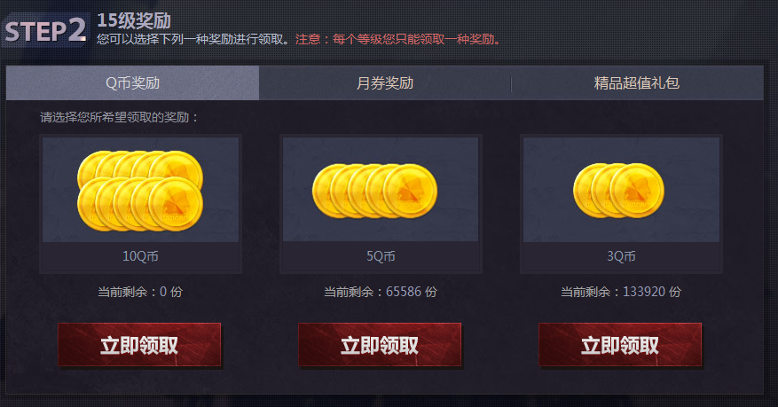 您可以选择下列一种奖励进行领取。注意:每个等级您只能领取一种奖励。