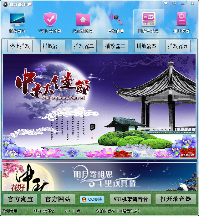 魅力K歌伴侣是一款用于网络视频直播、YY频道直播、视频聊天室、网络K歌、MC喊麦等地方使用的一款音效辅助软件。内置多种效果,KX驱动效果、VST机架效果;全部效果超过300个、网络DJ音乐超过七百首以上、VST效果支持声卡;创新7.1、5.1 外置声卡支持VST机架的均可使用。