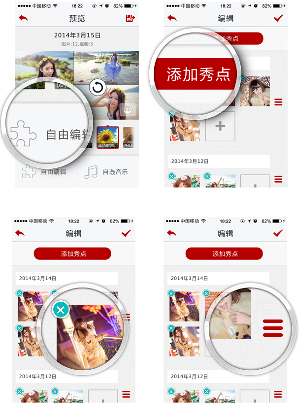 1、点击“自由编辑”可调整添加/删除图片,调整图片或图片组的顺序;