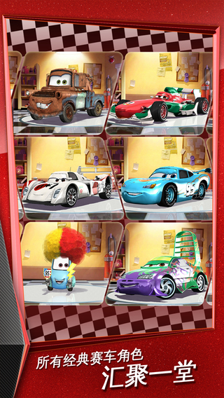 赛车总动员:急速闪电是由电影赛车总动员改编而成,游戏中卡通赛车造型,精美的3D动画,超过30座交互式建筑以及可爱的动画效果,真正重现了电影的本来面貌,还原了电影中的角色、建筑和地标。
