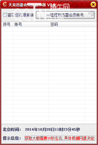 1、打开工具之后,点击一键提取迅雷会员账号。