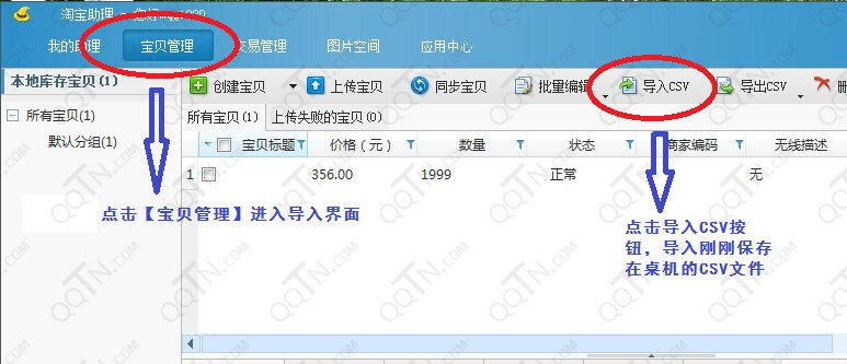 1、点击宝贝管理,进入导入界面
