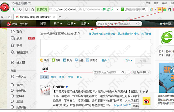 4、然后在浏览器右上角就会出现一个微博后悔药的功能按钮,点击一下就能切换微博版本