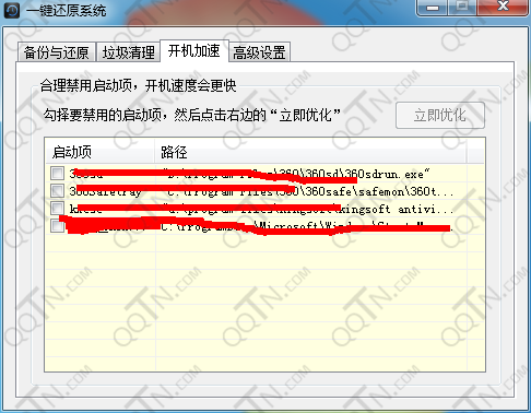 勾择要禁用的启动项,然后点击右边的“立即优化”