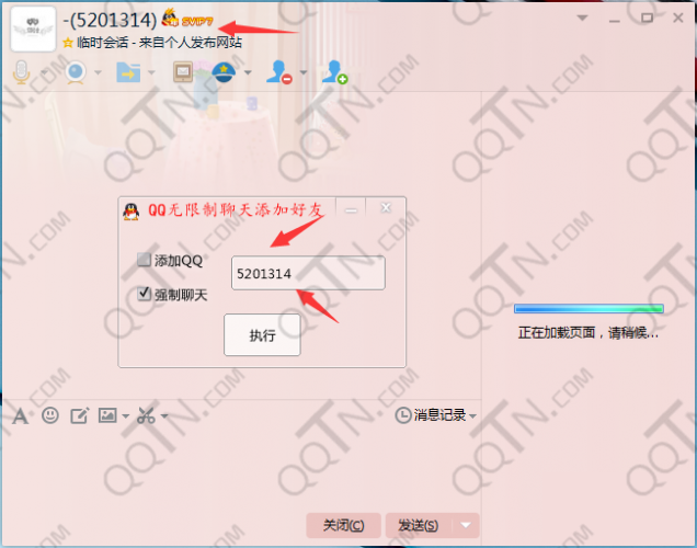 QQ强制聊天工具省去加好友的麻烦,直接强制聊天无阻碍!想必大家多遇到过这种情况,只是想临时找个人解决某个事情,没必要加好友,这是你便可使用QQ强制聊天器,打开一个临时会话窗口,便可开始聊天了;又或者你与别