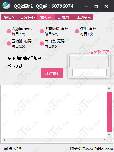 QQ活动宝,提供最专业最全面的QQ综合一站式解决方案。可以帮助QQ用户完成各种日常任务签到,如会员签到、黄钻签到、帮豆领取、空间签到等;活动每日自动抽奖;各类最新活动辅助软件,如点星抢绿钻等;还提供最新QQ活动咨询。QQ活动宝,拥有着及时丰富的内容,各种强大辅助软件,完全免费使用,绿色无广告,是目前最专业的一款QQ活动工具。