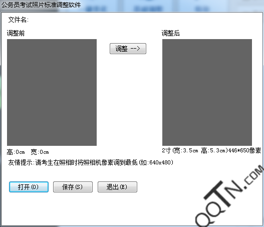 公务员考试照片标准调整软件其实就是一款标准的二寸照片生成工具,使用本工具能够将照片的尺寸生成标准的二寸大小3.5cm*5.3cm大小。傻瓜式操作,一键生成,无需借助其他图像处理软件缩放裁剪。