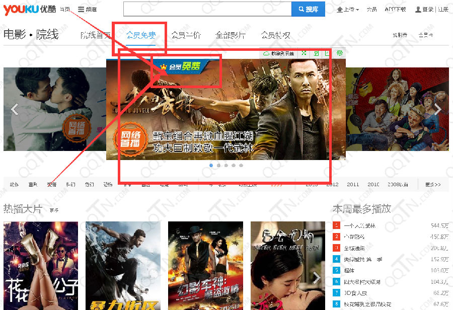 2、进入优酷,选择会员免费观看的电影
