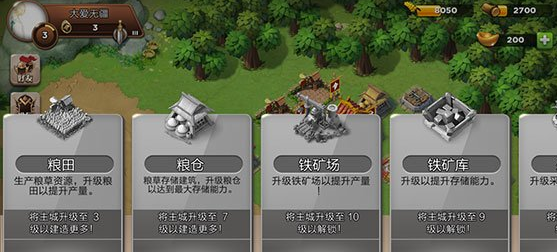 界面的右上角有粮食、木材、元宝三种材料的图标,生产人口需要粮食、建造建筑需要木材,那么问题就来了: