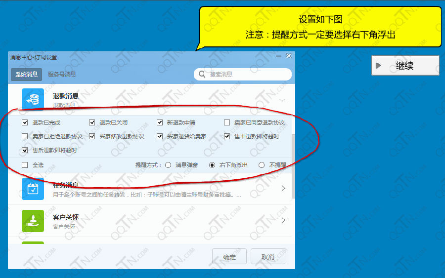 1、在使用卖家助手前必须订阅千牛相关消息,如下图所示,点击千牛设置