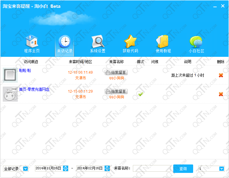 淘宝最简洁方便的来客提醒软件系统,访客记录一目了然,淘宝买家访问痕迹随时记录