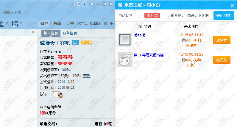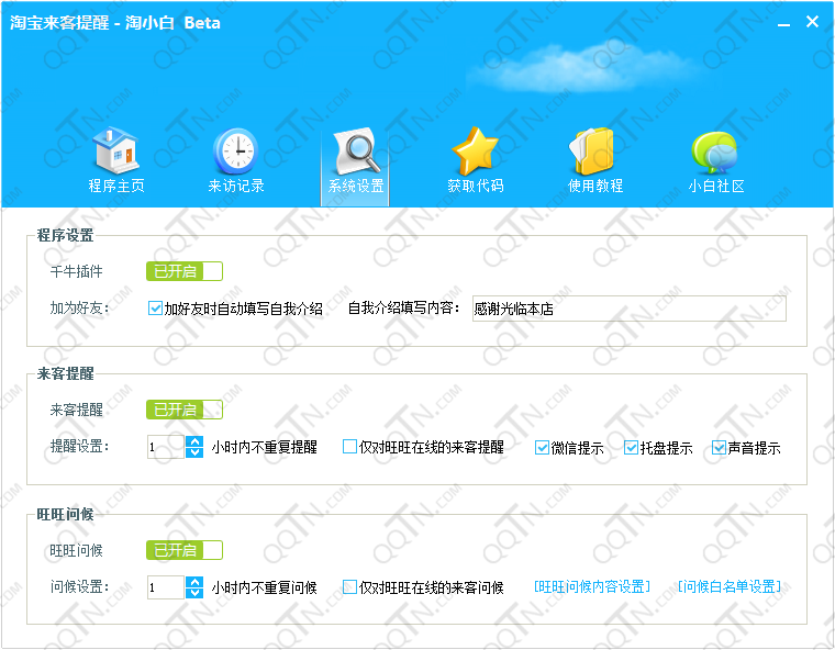 来客提醒,千牛记录,旺旺问候