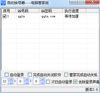 腾讯电脑管家自动登录换号器可以实现多QQ号全自动批量换号登录加速。由于一台电脑只能开一个电脑管家,如果你有多个QQ号需要登录管家完成加速。手动换号肯定很麻烦,容易忘记。本工具完全模拟鼠标键盘操作,按要求配置好之后,就能全自动换号登录电脑管家完成加速。