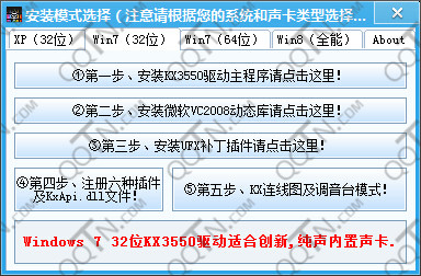 2、windows7 64位的KX3550驱动适合创新、纯声内置声卡