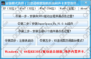 3、windows7 64位的KX3551驱动适合创新、纯声内置声卡