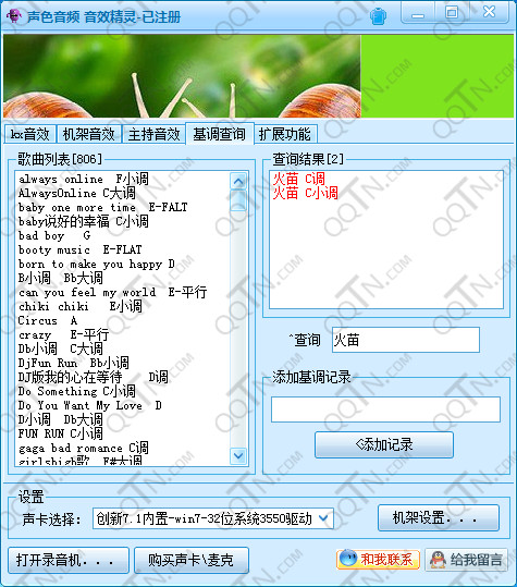 集成基调查询器功能,内部收录了800多条歌曲基调,而且您还可以自己添加的基调记录到里面。
